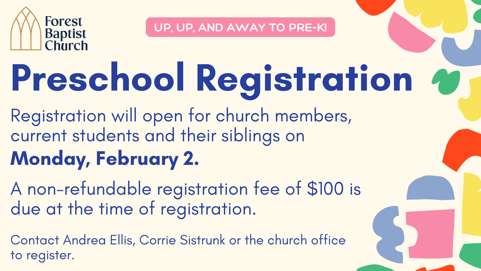 Registration will open for church members, current students and their siblings on Monday, February 2. A non-refundable registration fee of $100 is due at the time of registration.