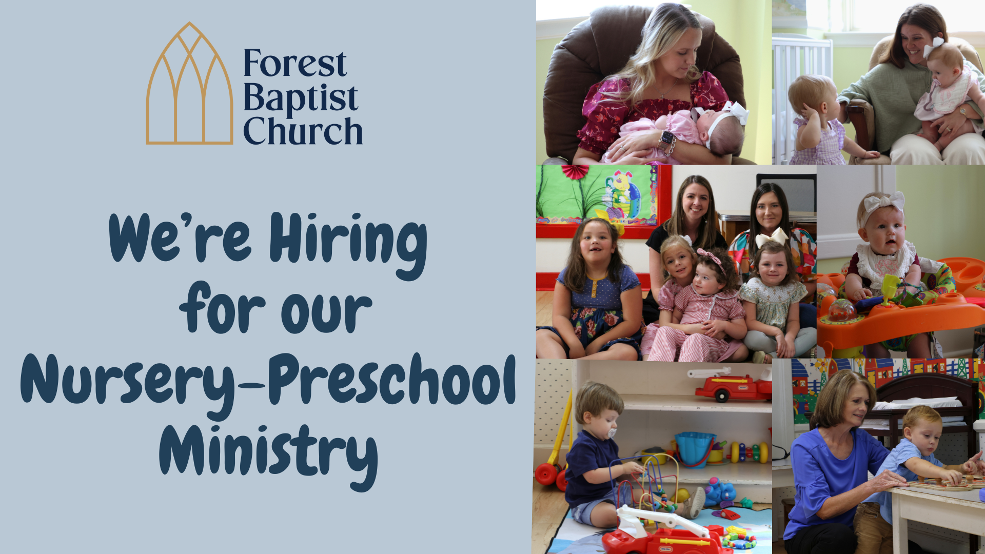 If you love the Lord and love babies, we need you! We’re looking for someone to work in our Nursery/Preschool area on Sunday mornings, Sunday evenings and Wednesday evenings. Contact the church office if you are interested. Share this with others. Church, we ask for you to pray that we will find the person to serve in this area!